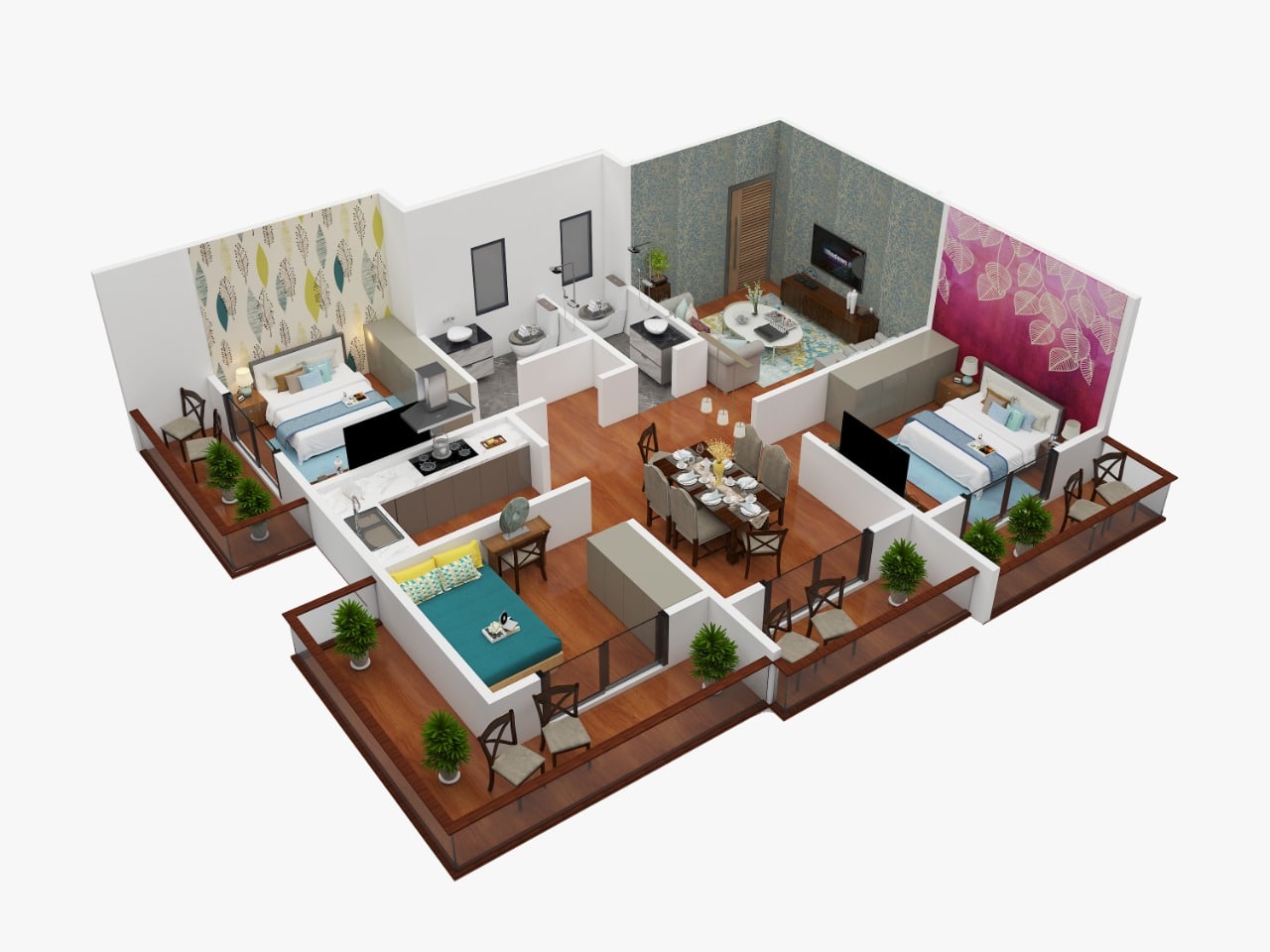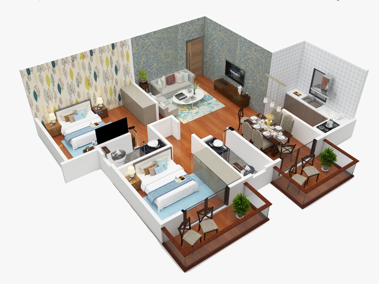 Provision of hot and cold water supply, Sanitary of branded make, Glazed tiles upto 7ft. height